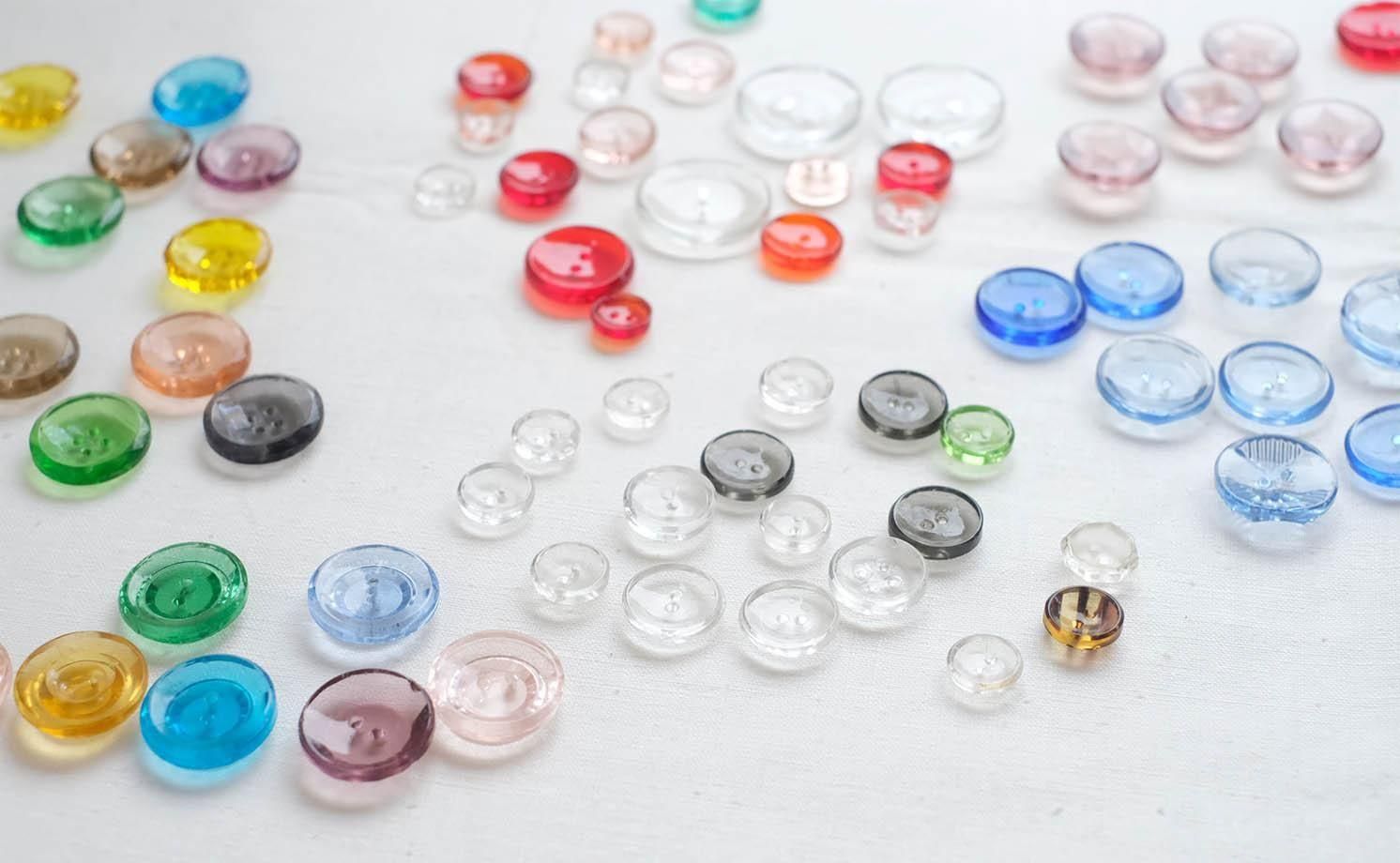ヴィンテージガラスボタン17個セット/グレー透明など2つ穴