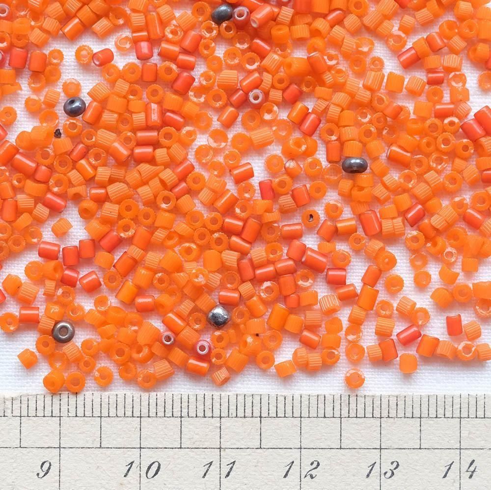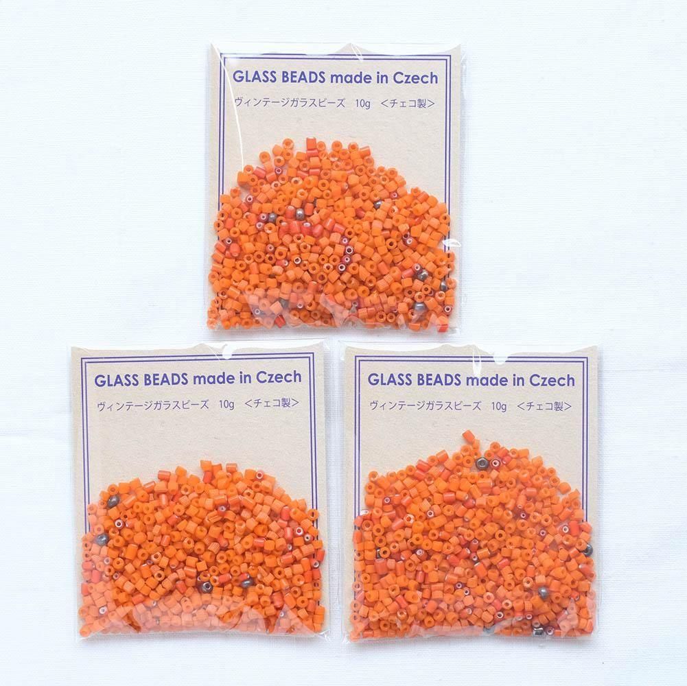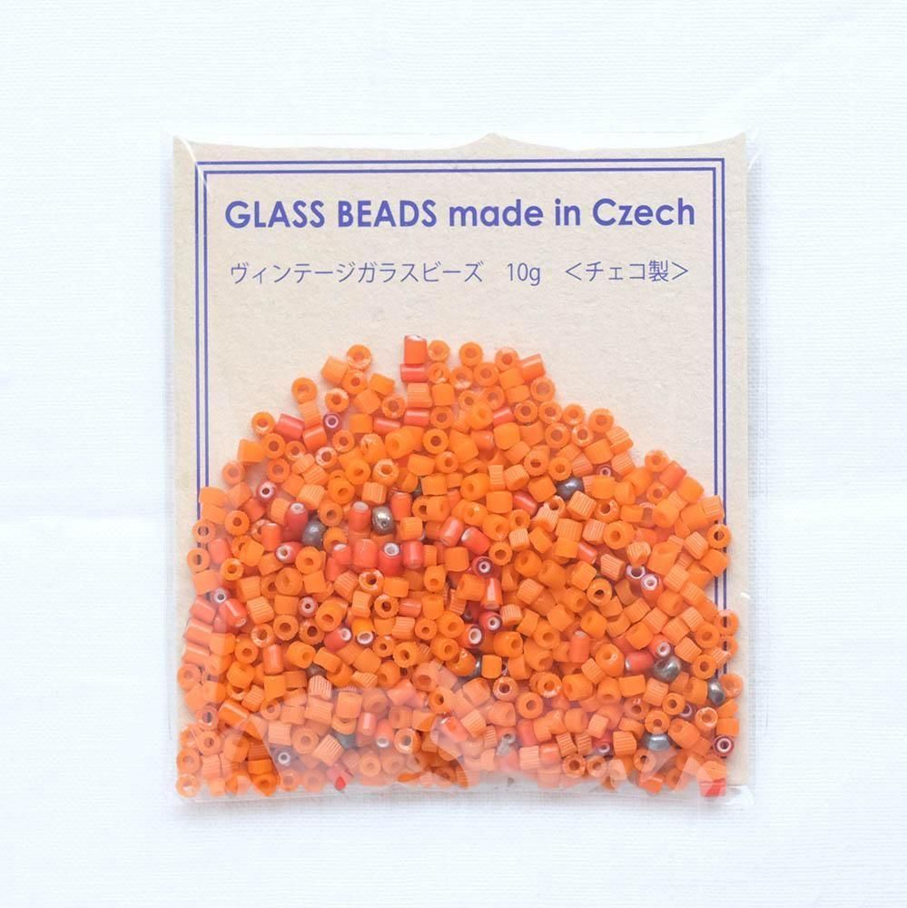 ヴィンテージビーズ 10g/筒型オレンジMIX