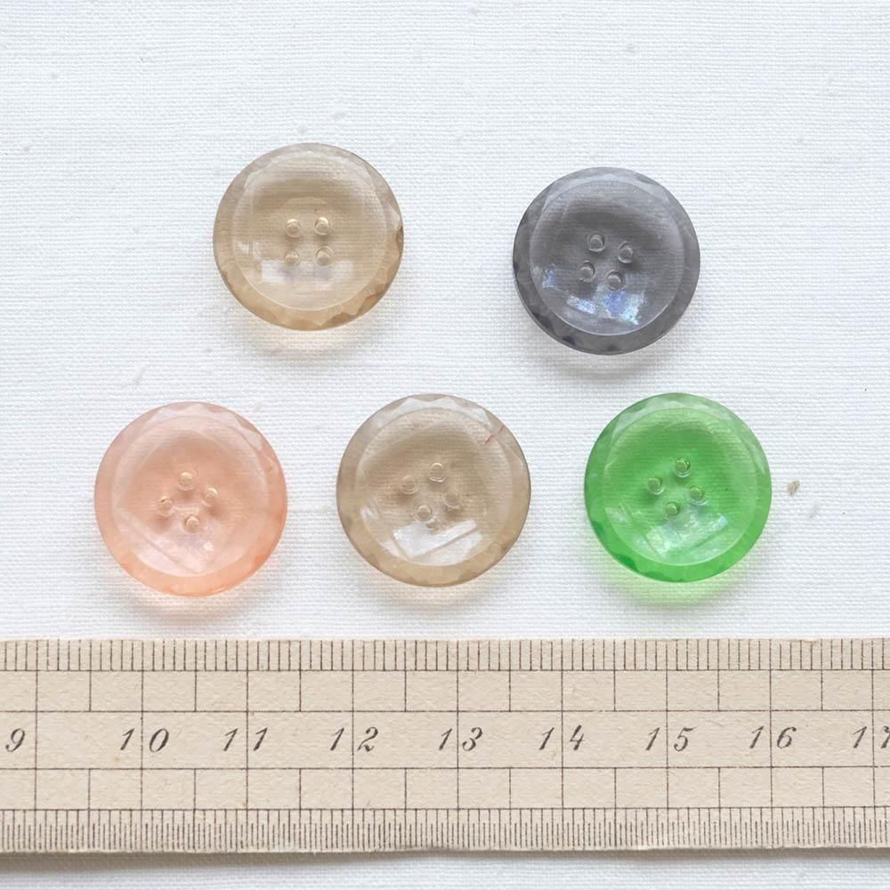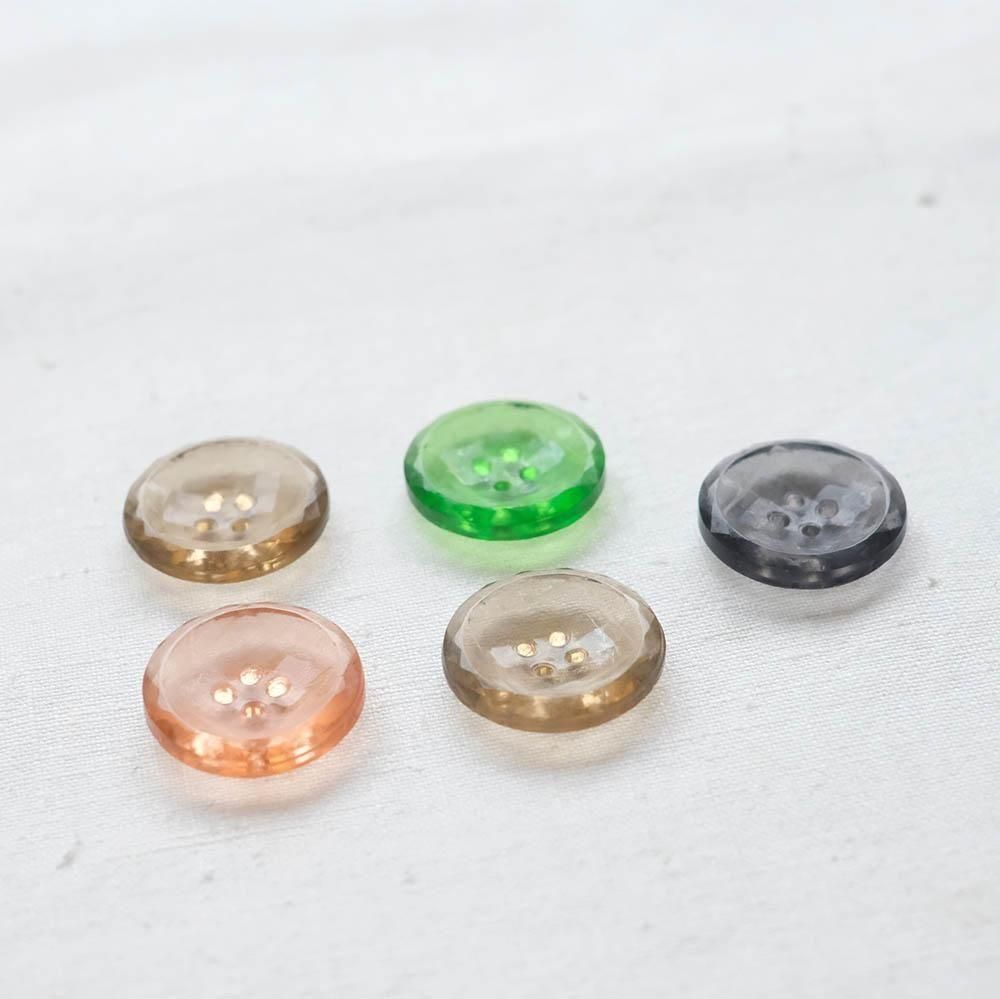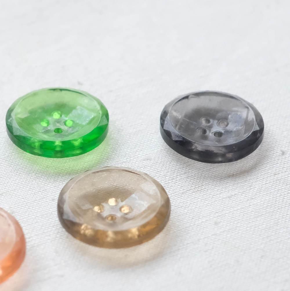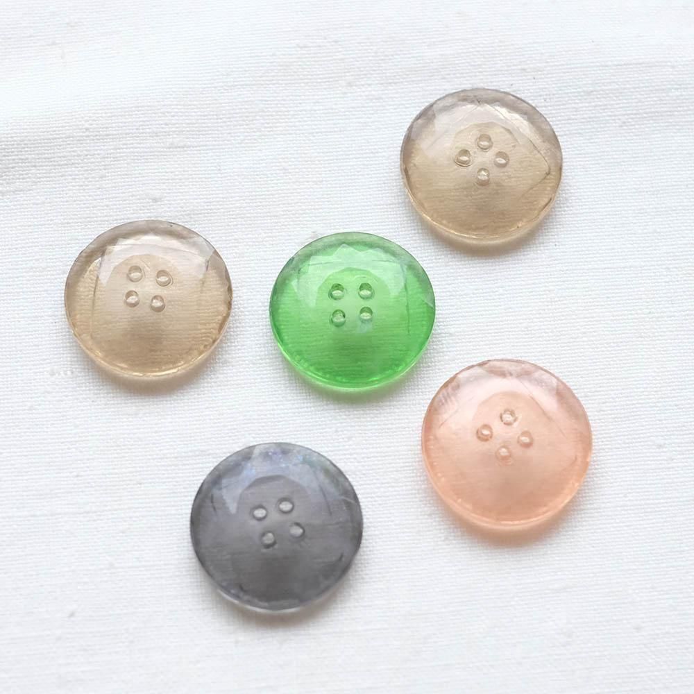 ちょっとくすんだ色とぽってりと厚みと丸みのある縁が可愛いガラスボタンのセット。