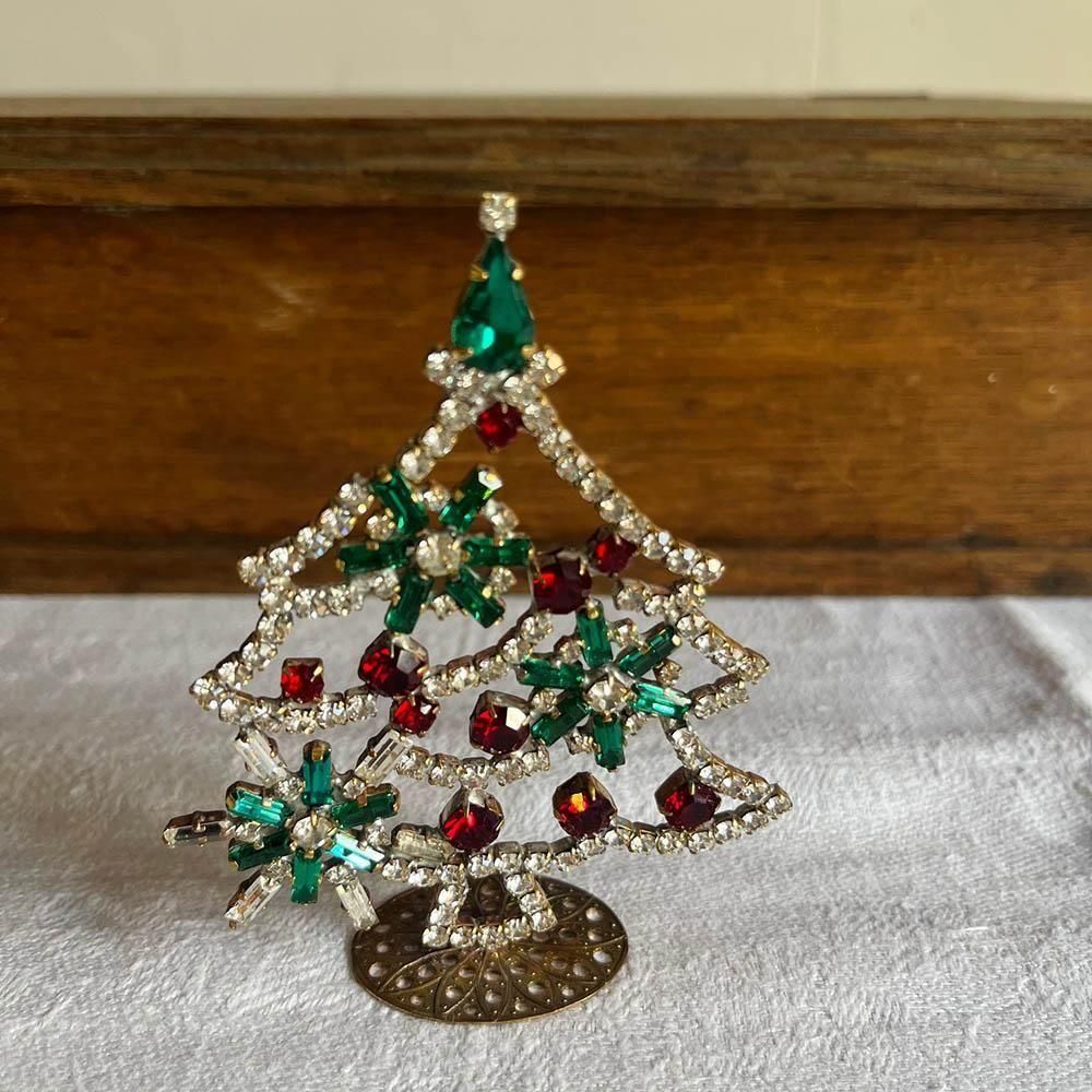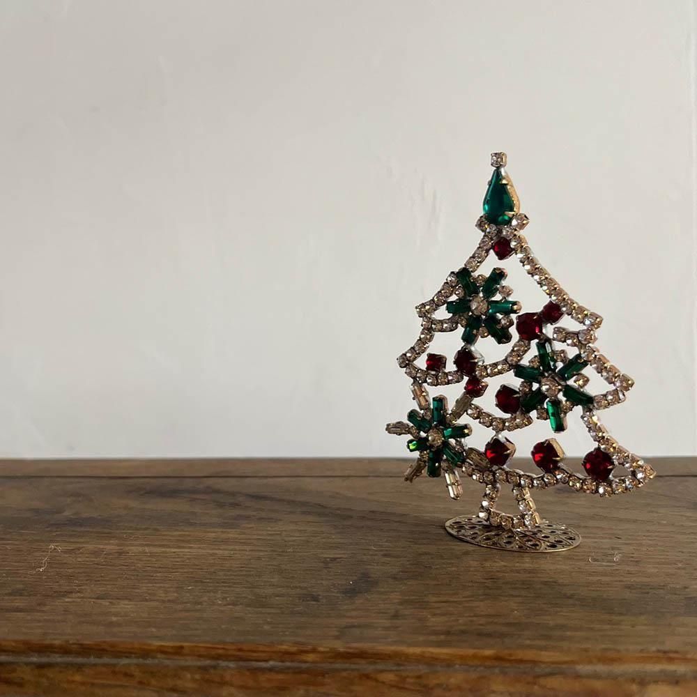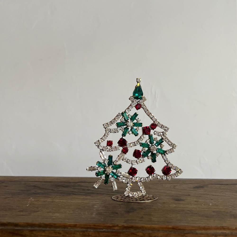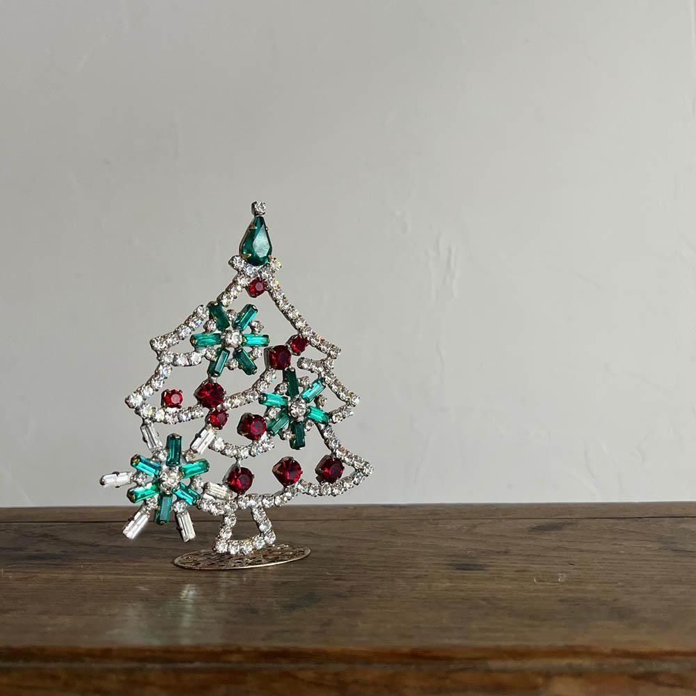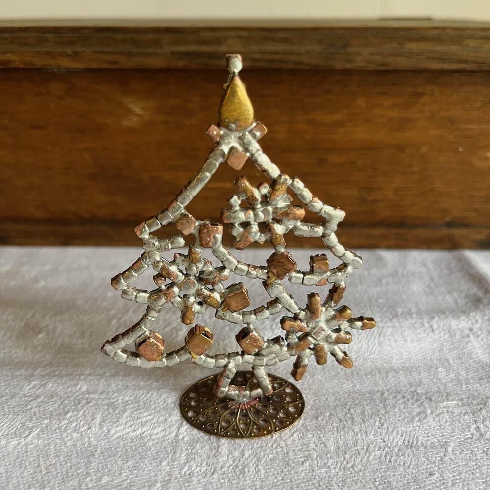 ラインストーンや金座を並べて形を作り、裏から鉛フリーの半田ごてで留めて形をつくっています。製造上どうしても形にゆがみやバラつき、傾きがあります。また、ラインストーンをカットした小さな金属片がポロリと出る場合がありますが、ツリー本体には問題ありません。手作り品の個性とご理解いただき、丁寧なお取り扱いをお願いします。